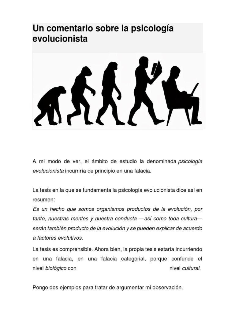 Un Comentario Sobre La Psicologia Evolucionista Pdf Pdf Evolucion Comportamiento